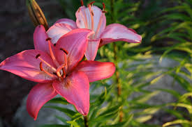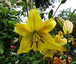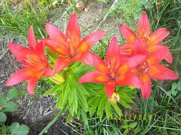 Lilium (members of which are true lilies) is a genus of herbaceous flowering plants growing from bulbs, all with large prominent flowers. Lilies are an important group of flowering plants and are important in culture and literature in much of the world. Most species are native to the temperate northern hemisphere, though their range and extends into northern subtropics. Many other plants have "lily" in their common name but are not related to true lilies. Lilies are tall perennials ranging in height from 2–6 ft (60–180 cm). They form naked or tunicless scaly underground bulbs which are their overwintering organs. In some North American species the base of the bulb develops into rhizomes, on which numerous small bulbs are found. Some species develop stolons. Most bulbs are deeply buried, but a few species form bulbs near the soil surface. Many species form stem-roots. With these, the bulb grows naturally at some depth in the soil, and each year the new stem puts out adventitious roots above the bulb as it emerges from the soil. These roots are in addition to the basal roots that develop at the base of the bulb. The flowers are large, often fragrant, and come in a range of colours including whites, yellows, oranges, pinks, reds and purples. Markings include spots and brush strokes. The plants are late spring- or summer-flowering. Flowers are borne in racemes or umbel sat the tip of the stem, with six tepals spreading or reflexed, to give flowers varying from funnel shape to a "Turk's cap". The tepals are free from each other, and bear a nectary at the base of each flower. The ovary is 'superior', borne above the point of attachment of the anthers. The fruit is a three-celled capsule.