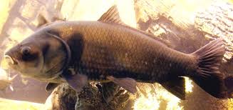 The bigmouth buffalo has a large terminal (ending at tip of snout) mouth which helps separate them from theblack and smallmouth buffalo which have small sub-terminal (ending below tip of snout) mouths. Bigmouth buffalo have their eye level with the tip of the upper jaw and the other two Ohio species of buffalo have their eye positioned well above the tip of the upper jaw. They are typically a dark gray or bronze-gray, sometimes with a slight bluish overcast, and are usually darker than the smallmouth but lighter than the black buffalo in coloration. All species of buffalo have a long continuous dorsal fin and no spines in any of their fins. Buffalo look similar to common carp but are not closely related. The bigmouth buffalo is native to Ohio, and found in both the Ohio River and Lake Erie drainage. It is typically found in large rivers including the Ohio River and others such as the, Scioto River, Muskingum River, Maumee River, and Sandusky River. It is also found in the marshes of Sandusky Bay and other similar backwater areas of the Western basin of Lake Erie. Bigmouth buffalo prefer waters with less current than other species of Buffalo and are typically found in pools or backwater areas when in rivers