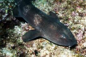 The blind shark, Brachaelurus waddi, lives only in Australian waters of the Pacific Ocean, from the Northern Territory to New South Wales, living in the near-shore reefs and sea grass beds. It is nocturnal, resting in reef crevices and caves in the daytime. Despite its name it is not blind, but has a habit of closing its eyes when held out of the water. It is related to the Colcloughs Shark, Heteroscyllium colcloughi. Blind sharks are light to dark chocolate brown with white specks on the back and sides. Juveniles have dark bands on the body that fade as they mature. It has has a slightly flattened head, small eyes and a nasal barbel projecting from both nostrils. A large spiracle is behind each eye which allows the blind shark to root around about in silt without affecting its breathing. They feed at night on anemones, cuttlefish, crabs, shrimp and small fish, and are very wary of divers. Blind sharks are ovoviviparous, producing eggs that are retained inside the female until hatching occurs, giving birth to live pups around six inches long. The reach around four feet long at maturity.