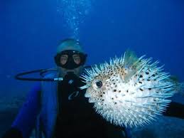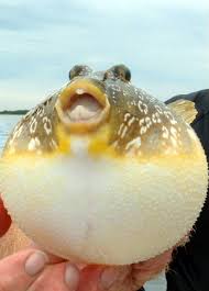 Tetraodontidae is a family of primarily marine and estuarine fish of the order Tetraodontiformes. The family includes many familiar species, which are variously called pufferfish, puffers, balloonfish, blowfish, bubblefish, globefish, swellfish, toadfish, toadies,honey toads, sugar toads, and sea squab. They are morphologically similar to the closely related porcupinefish, which have large external spines (unlike the thinner, hidden spines of Tetraodontidae, which are only visible when the fish has puffed up). The scientific name refers to the four large teeth, fused into an upper and lower plate, which are used for crushing the shells of crustaceans andmollusks, their natural prey. Pufferfish are generally believed to be the second most poisonous vertebrates in the world, after the golden poison frog. Certain internal organs, such as liver, and sometimes the skin, are highly toxic to most animals when eaten; nevertheless, the meat of some species is considered a delicacy in Japan (as 河豚, pronounced as fugu), Korea (as bok), and China (as 河豚 hétún) when prepared by chefs who know which part is safe to eat and in what quantity.