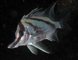 Common names: Boarfish, Diamondfish. Minimum size: 45cm. Possession limit: 2. Possession limits apply everywhere, including the home. Longsnout boarfish are short deep-bodied fish characterised by 2-3 black diagonal bars across their silvery-white sides. Dorsal fins and pectoral fins are long and are black along the edge. Longsnout boarfish grow to over 50cm and 4.5kg in weight. There is little information on the life history of this species. They are commonly found around sheltered inshore reefs. It is suggested that they are territorial over small areas of reef and will confront divers who enter their territories. This behaviour makes them very susceptible to spearing and there has been concerns about stocks in some areas around Tasmania, consequently it is now prohibited to spear boarfish. Very rarely caught on a line, mainly due to their very small mouth, their diet consists of small invertebrates including crustaceans and marine worms. Boarfish are good eating with the flesh white, firm and tasty. The spines are venomous and care is needed removing fish entangled in a net or when cleaning this fish. Reaction to a spike may be from mild to severe. Treat by washing the wound with water as hot as bearable or with mild acid solutions such as vinegar.